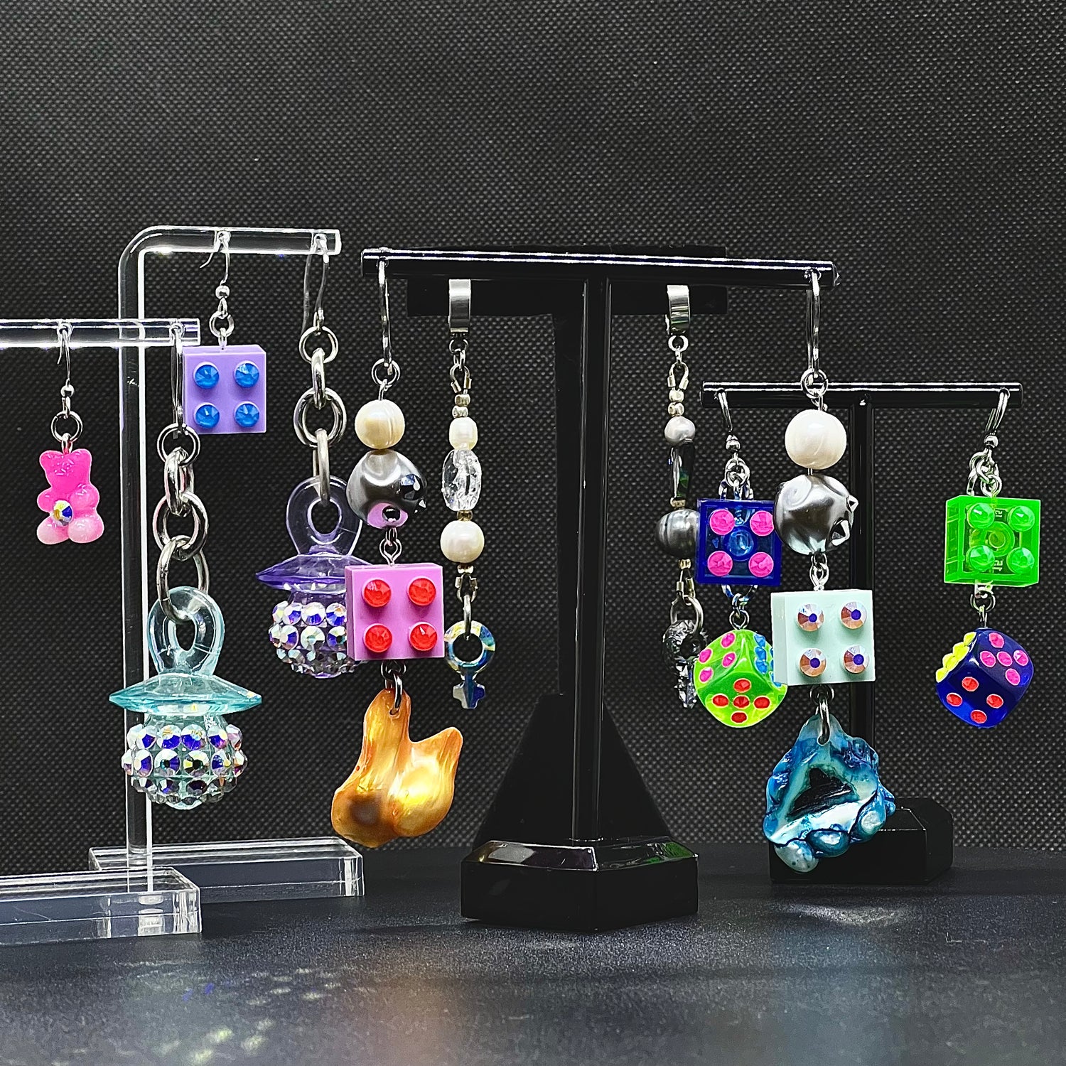 Black pearls, Swarovski and lava make up these one of a kind...