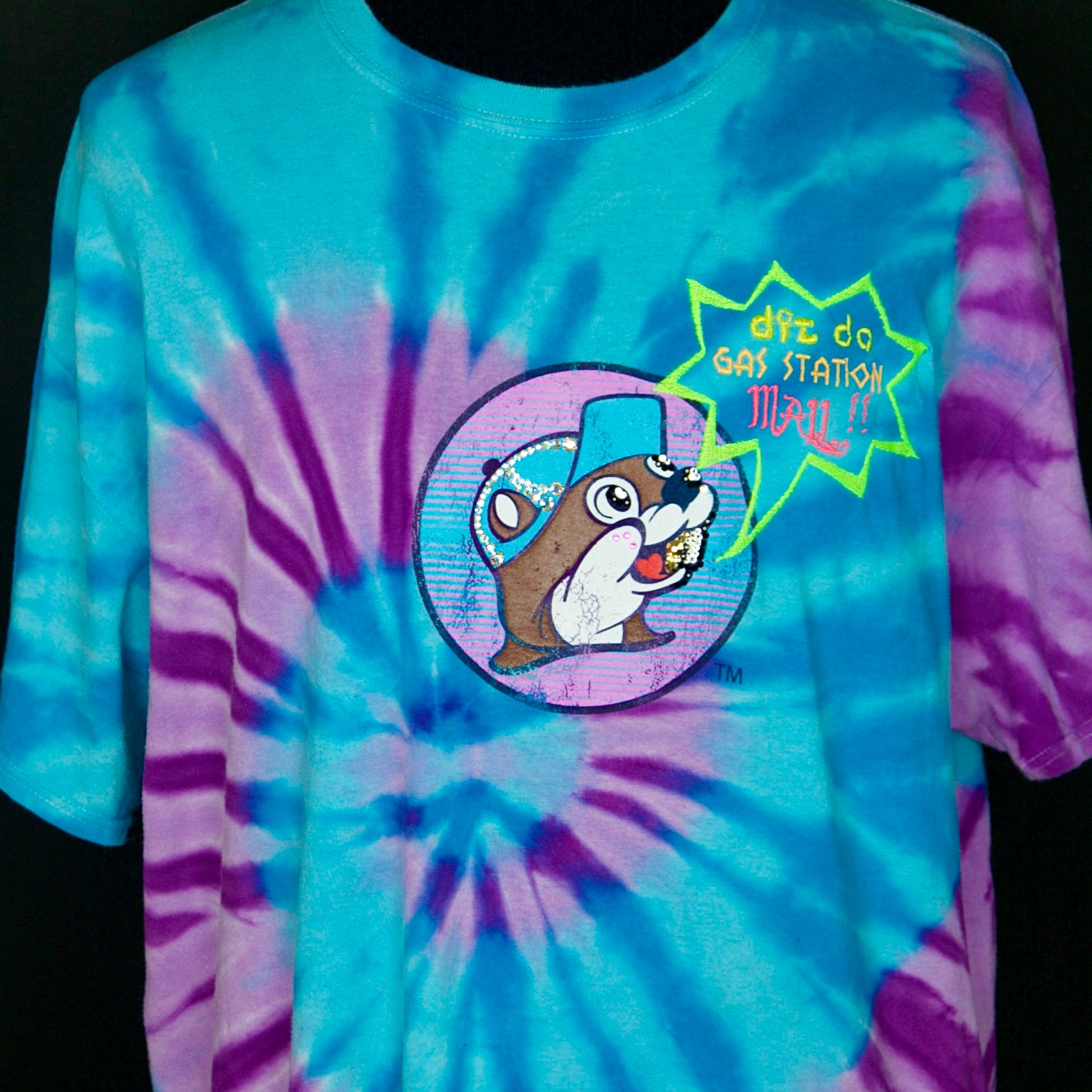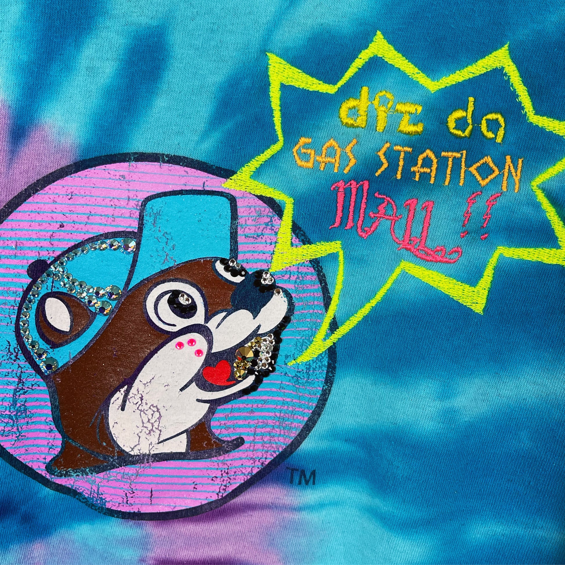 Shirt is upcycled, embroidered and bejeweled.