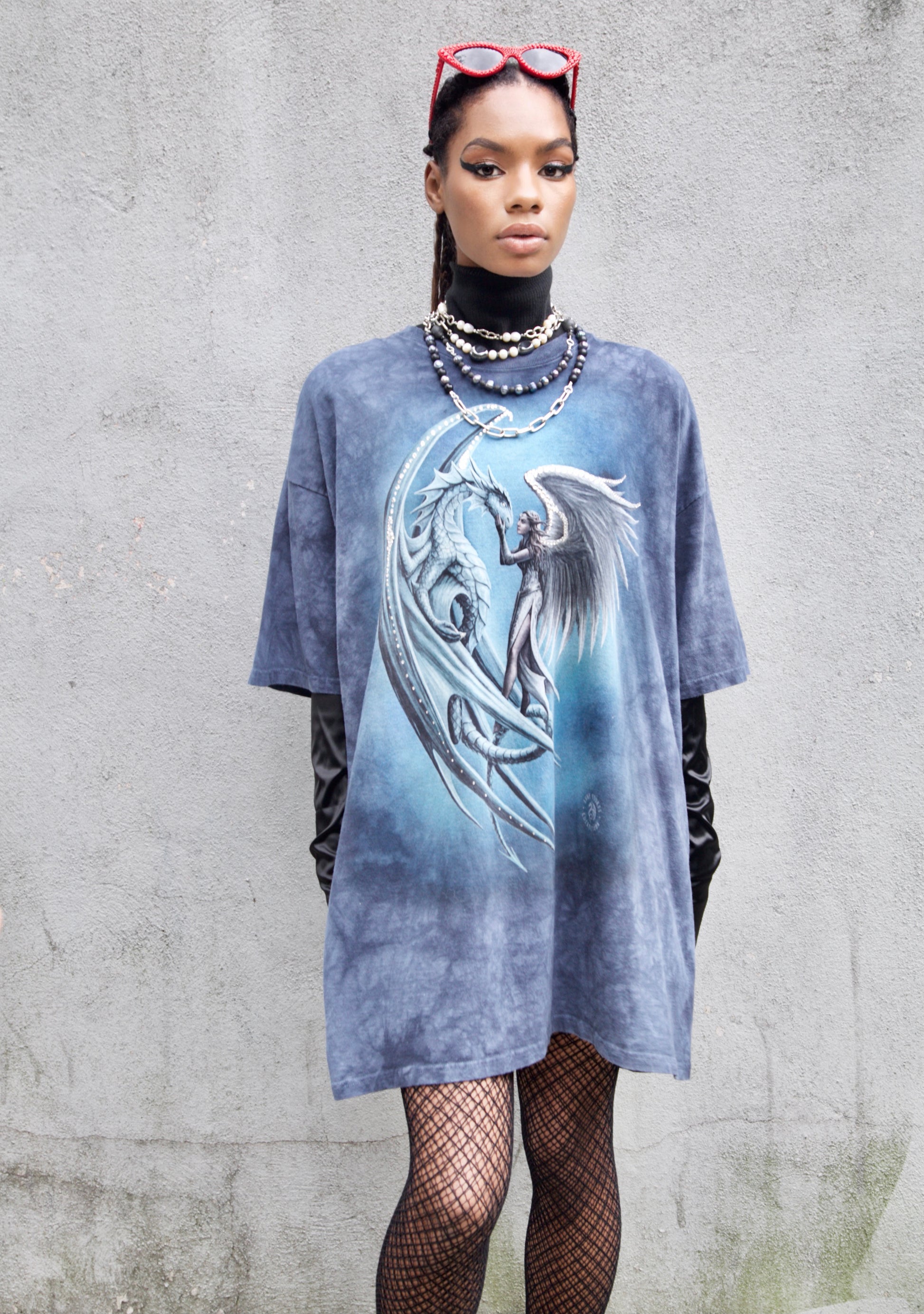 Casil wears a pair of the swarovski dotted neon dice earrings.