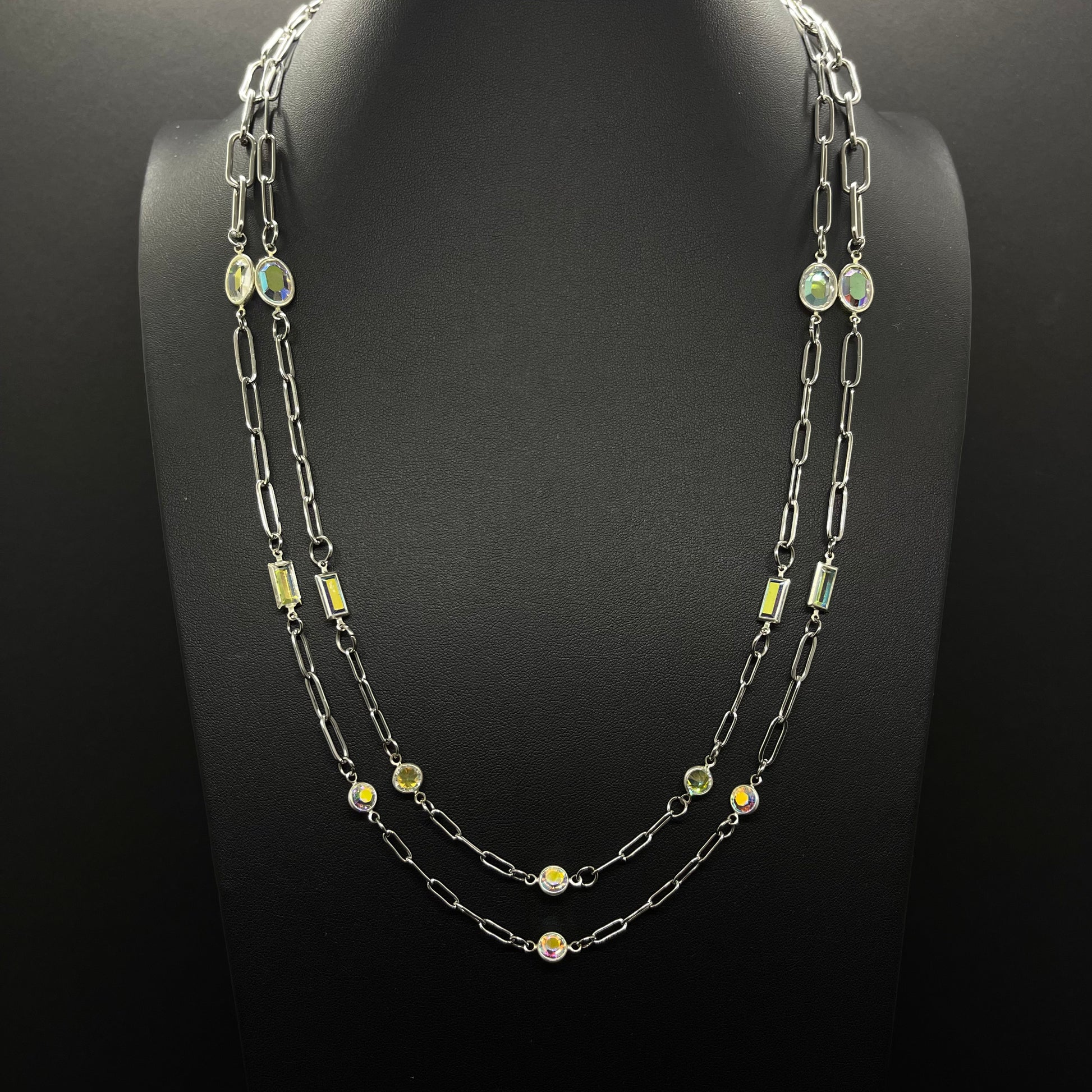 Dainty stainless steel chain with vintage Swarovski connectors.